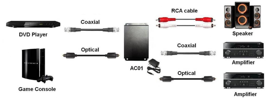 Il convertitore audio digitale/analogico bidirezionale consente agli utenti di convertire segnali audio ottici/coassiali digitali e analogici. Il dispositivo può convertire tra formati analogici e digitali e viceversa e può trasmettere simultaneamente a tutte le uscite (a seconda del formato audio) consentendogli di agire come distributore audio.
