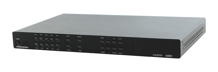 Questa matrice UHD HDMI 10 per 2 è una soluzione avanzata per commutare fino a 10 ingressi HDMI su due uscite HDMI. Fornisce pass-through ad alte prestazioni di video / audio ed è in grado di ricevere e trasmettere velocità di banda di 300 MHz / 9 Gbps senza perdita di dati. La tecnologia di commutazione rapida può ridurre notevolmente il tempo necessario per passare da un input all'altro. Supportando le ultime funzionalità, puoi essere certo di una distribuzione HDMI affidabile e di alta qualità.