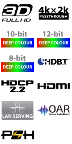 - Supporta le specifiche HDBaseT 2.0 su un singolo cavo Cat.6 / 7 fino a 100m / 328ft e cavo Cat.5e fino a 90m / 295ft
