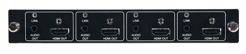 Questo modulo di uscita consente la connessione di un massimo di 8 display HDMI alla matrice modulare. Sono supportati risoluzioni fino a 4K a 30Hz o WUXGA @ 60Hz (RB) e segnali 3D insieme alla trasmissione audio ad alta definizione, tra cui LPCM 7.1CH, Dolby Digital Plus, Dolby True HD e DTS Master Audio. Gli ingressi HDMI supportano cavi di lunghezza fino a 15 m @ 1080p / 8 bit, 10 m @ 1080p / 12 bit o 5 m @ 4K